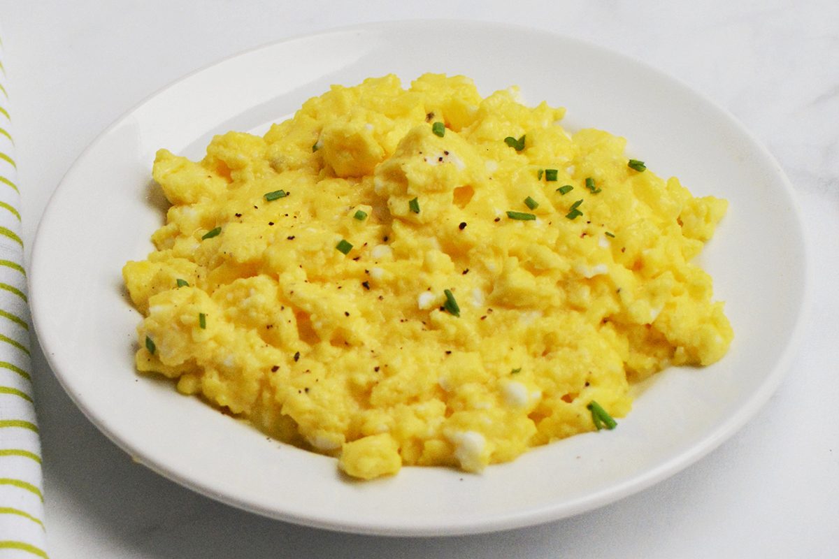 When cooked carefully, these eggs are not too runny, not crumbly, not dry at all and extra thick and velvety. Teigen’s trick to avoiding rubbery eggs is the extra low heat; she suggests removing the pan from heat all together if you notice the eggs cooking too quickly.