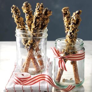 - Peanut Butter & Jelly Granola: Combine oats with salted peanuts and pecans. In a medium saucepan, melt peanut butter, honey and strawberry jam together. Toss to coat and back at 350° for 25-30 minutes or until crisp, stirring every 10 minutes.
