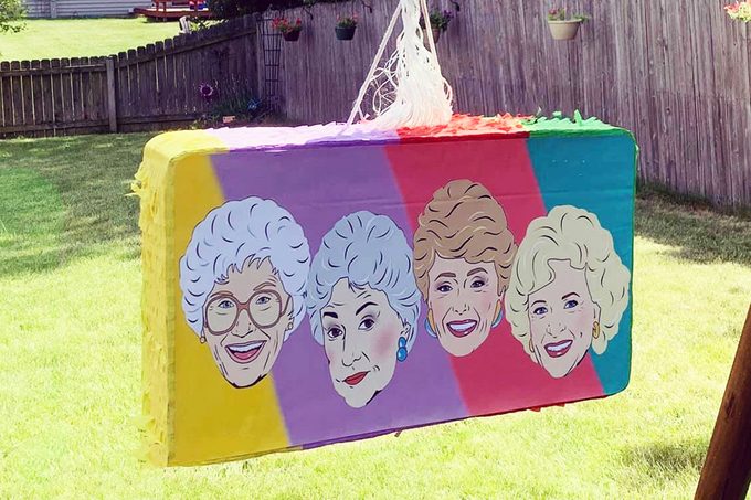 - Piñata: Talented mom Olivia made her own piñata (how cute is that?!). You can complete your Golden Girls-themed party with a palm tree or pineapple piñata—both would get the stamp of approval from Rose. (Here’s how to make a piñata at home!)