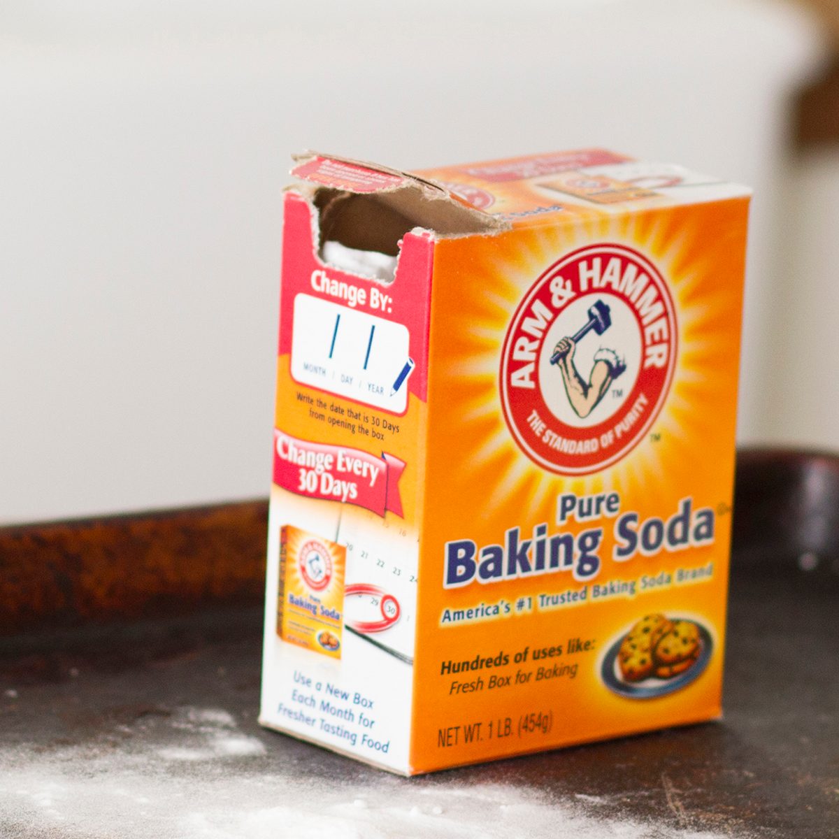 Baking soda, like baking powder, can lose potency over time (using the expired stuff won’t hurt you—it just won’t be effective in your recipes). You can keep an unopened package in the pantry for up to three years without much consequence. Once opened, try to use it within six months, though you can extend the life by a few years by moving it from that cardboard box to a glass jar or canister.