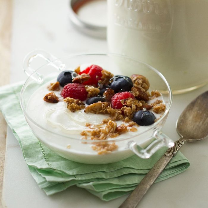 You'll be surprised by how easy it is to make homemade yogurt. Top with granola and your favorite berries. —Taste of Home Test Kitchen