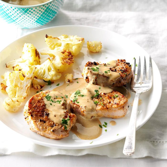 This comforting pork dish feels fancy, thanks to the creamy sauce kicked up a notch by blue cheese. Guests go crazy over it, and would never guess how quickly it all comes together. —Lynne German, Woodland Hills, California