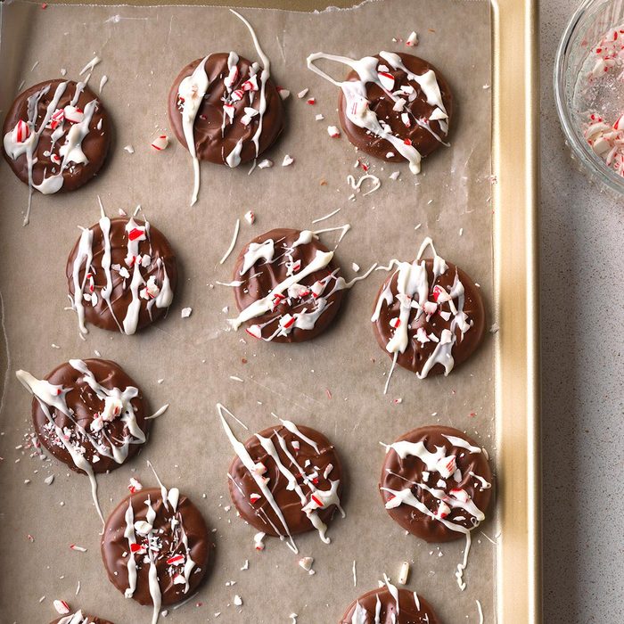 Add a pop of color to your cookie spread with these candy-coated Ritz crackers. You can decorate them with sprinkles, crushed spearmint candies or green colored sugar.