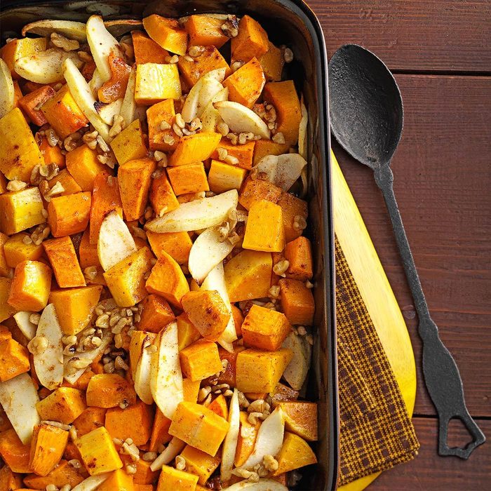 To me, cooking is an art, and I love trying new recipes. For this one, I dressed up baked butternut squash, sweet potatoes and apples with citrus and spices. —Ruth Cowley, Pipe Creek, Texas