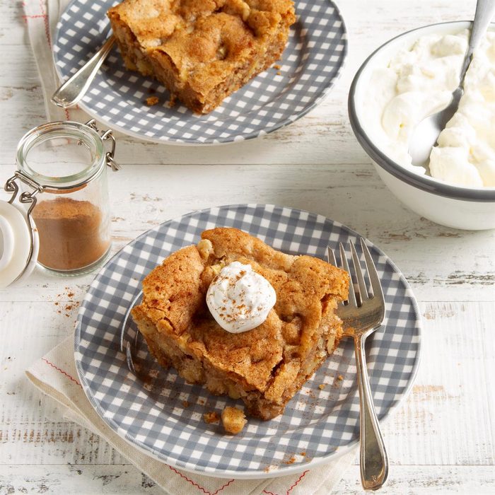 These bars make an excellent fall dessert. We like to warm individual servings in the microwave and serve with a scoop of vanilla ice cream. It quickly became a family favorite; maybe it'll become one of your family's, too. —Carol Stuber, Osawatomie, Kansas