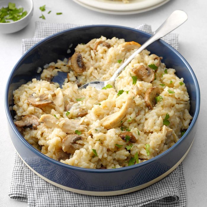 This satisfying risotto is a wonderful way to reinvent leftover turkey. I use Romano cheese, garlic and plenty of fresh mushrooms. —Sunny McDaniel, Cary, North Carolina