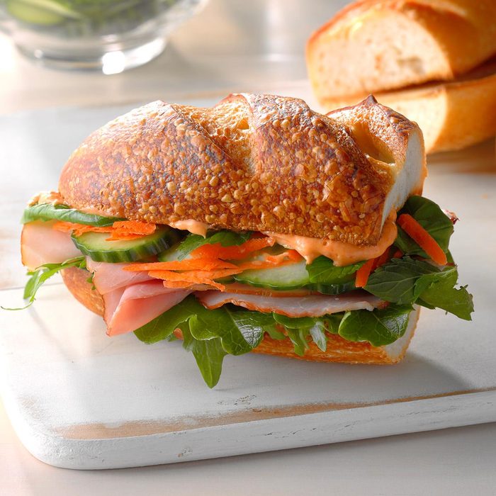 We love these sandwiches with ham, but you can use leftover cooked pork instead of the ham if desired. —Janice Elder, Charlotte, North Carolina