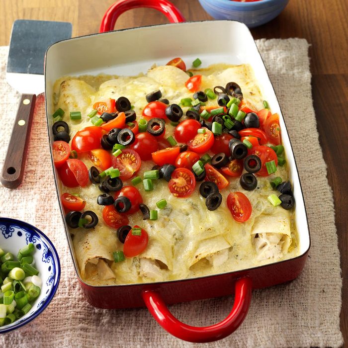 Twice a month I make chicken enchiladas, lasagna-style. It’s a regular with us because assembly is easy and my whole family gives it a thumbs-up. —Cheryl Snavely, Hagerstown, Maryland