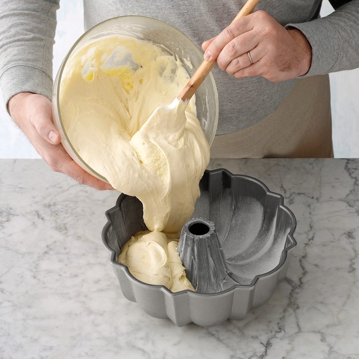 The best tip Catherine could give any Bundt baker is to grease the pan with shortening and dust with flour—no butter here! “You don’t want to use butter here. The milk solids in it can cause the cake to stick when it bakes,” Catherine advises.