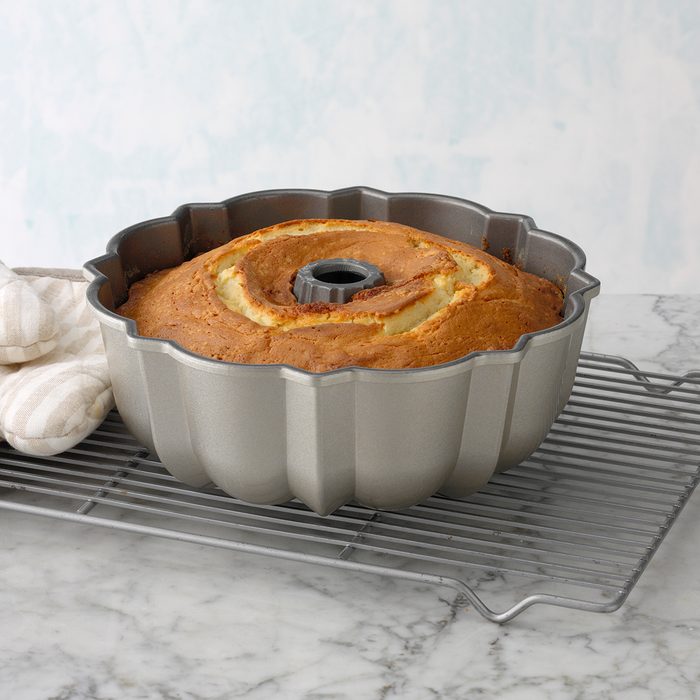 For beginners, Catherine says, “start with a pan without much design, something curved.” A pan like this Original Bundt pan is a good choice for starters—plus it always looks good. Catherine also adds: “If your grandma or mom gives you a pan that always works for them, use it!” Moms always know best.
