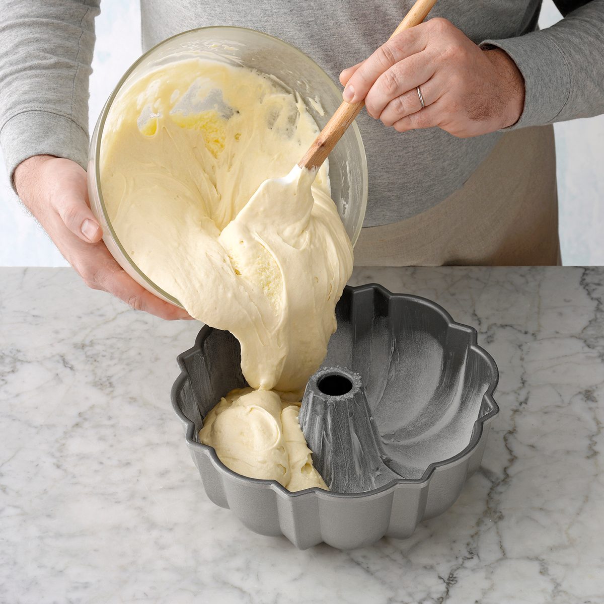 According to Catherine, denser cake batters do best in these pans. You can easily bake most pound cake recipes in your favorite Bundt pan. “But don’t use a light sponge or box cake mix in a Bundt pan,” she says. These lighter batters don’t have the heft or structural integrity needed to come out of these fancy pans cleanly.