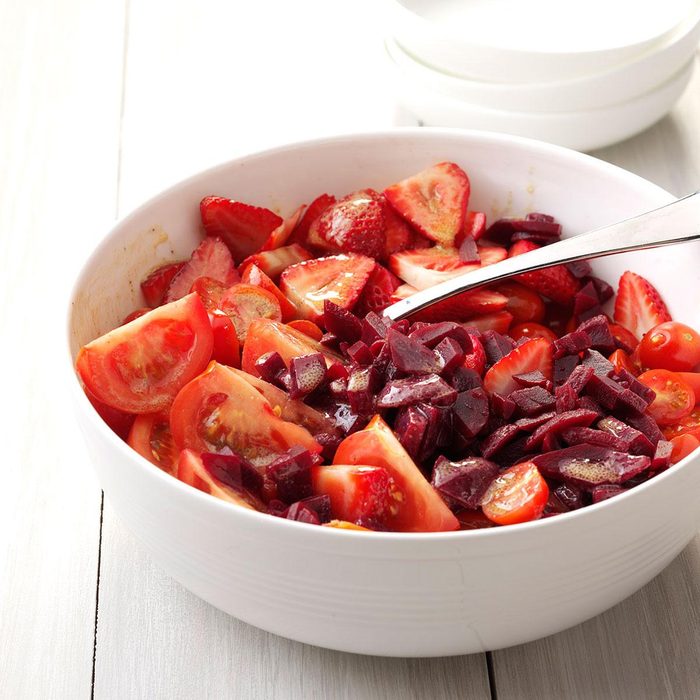 Just looking at this bright red salad cheers me up—and then I get to taste it! For garnish, sprinkle on fresh chives and mild white cheese. —Lorraine Caland, Shuniah, Ontario