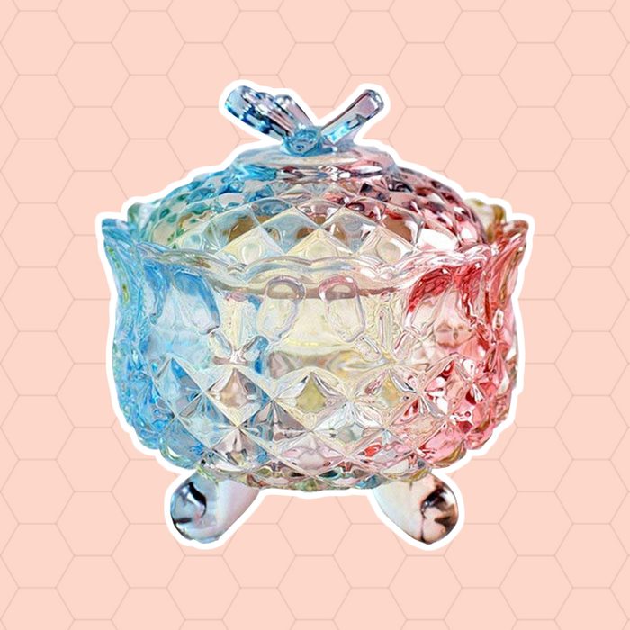 This vintage crystal glass jar is a centerpiece gem that can hold it all—from candies to cookies to cotton balls to buttons to coffee beans. Choose from a rainbow of vivid colors that will gorgeously enhance any table or countertop.