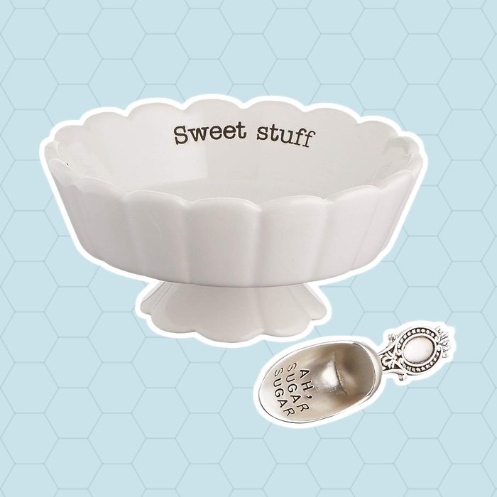 Fill this ceramic candy dish with all of the “sweet stuff” your heart desires. The scalloped rim and stand add a dash of classic charm. It even includes a cute candy scoop for fun and easy serving. It makes a beautiful gift for any occasion (psst…and for an extra special gift send it along with this vintage candy)!