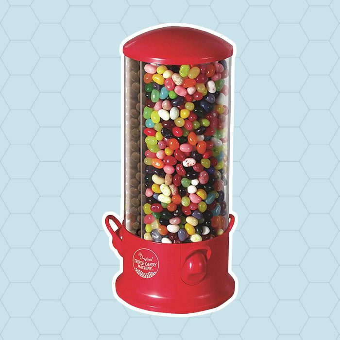 Triple the choices, triple the sweetness, triple the fun! Store and dispense up to three different snacks (or the same snack with different colors, whatever sparks your fancy) with this classic three-way candy dispenser tower. It even rotates a full 360 degrees at the base so you can quickly pick your craved confection of the moment. Load it up with the most popular candy from when you were a kid.