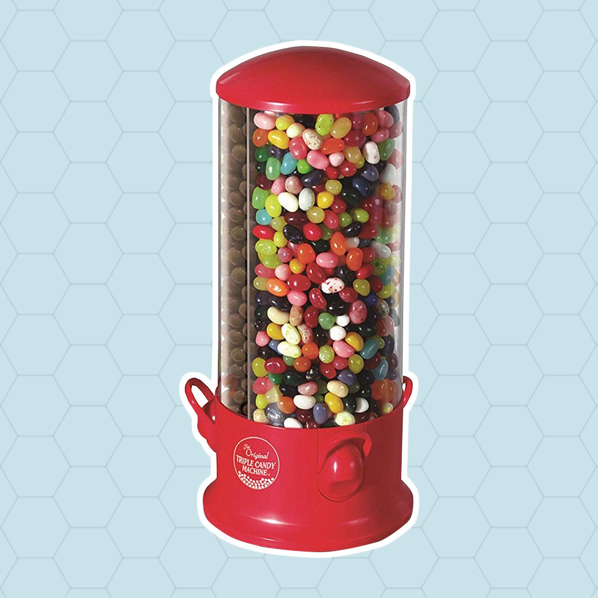 Triple the choices, triple the sweetness, triple the fun! Store and dispense up to three different snacks (or the same snack with different colors, whatever sparks your fancy) with this classic three-way candy dispenser tower. It even rotates a full 360 degrees at the base so you can quickly pick your craved confection of the moment. Load it up with the most popular candy from when you were a kid.