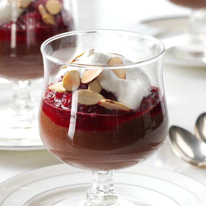 I combined fresh cranberry salad with the rich custard known as pots de crème, and the result is ever so elegant compared to the usual desserts. —Carmell Childs, Clawson, Utah