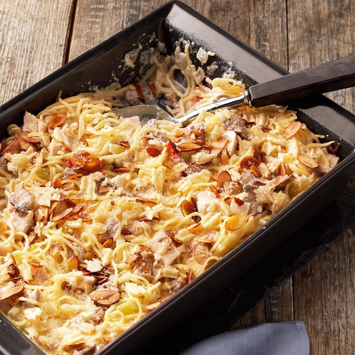 This creamy tetrazzini has been one of my favorite recipes for over 20 years. I always hear, "Yum. Is there any more?" Even overnight guests ask for leftovers the next day! —Amanda Hertz-Crisel, Eagle Point, Oregon