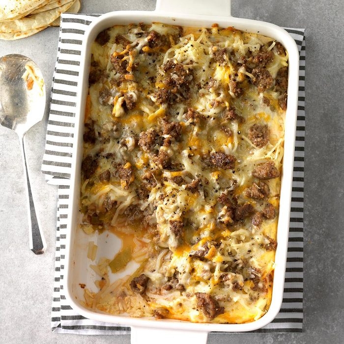 Here's a breakfast casserole that is very easy on the cook. I can make it the night before and it's ready in the morning. It's the perfect recipe when I have weekend guests. —Ella Stutheit, Las Vegas, Nevada