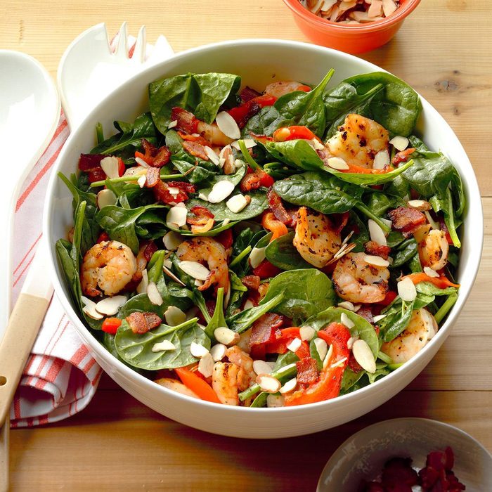 Shrimp and Spinach Salad with Hot Bacon Dressing