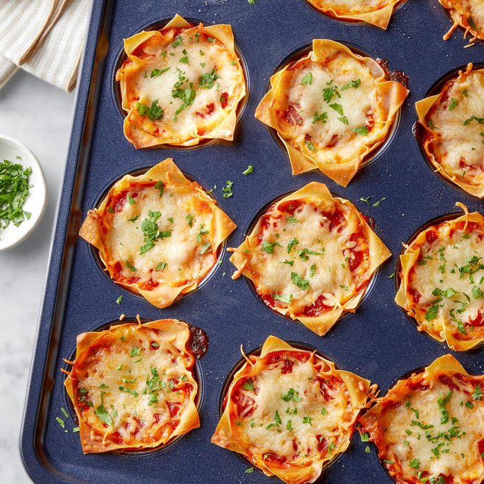 This is a super fun way to serve lasagna for make-ahead lunches, potlucks or other fun get-togethers. My daughter took some of these to work and by noon was emailing me for the recipe. —Sally Kilkenny, Granger, Iowa