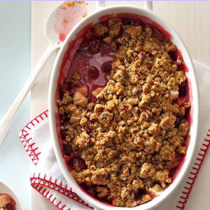 A dollop of whipped topping adds a nice finishing touch to this satisfying crumble. Sometimes I drizzle a little flavored coffee creamer on top instead of the whipped topping. —Nancy Sousley, Lafayette, Indiana