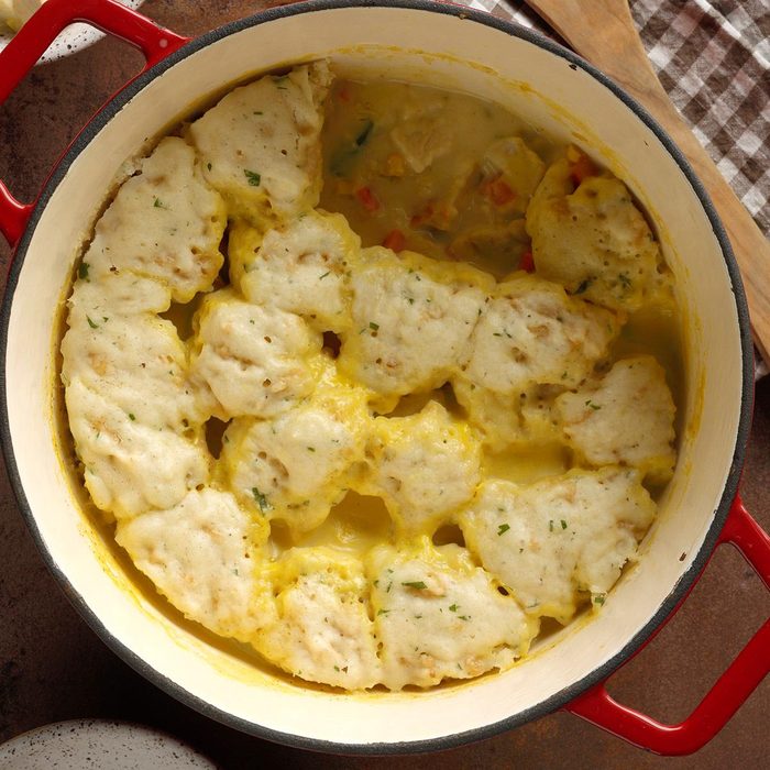 Ready in just 30 minutes, this homey meal relies on convenience items and timesaving drop-style dumplings. It couldn’t be any easier! —Willie DeWaard, Coralville, Iowa
