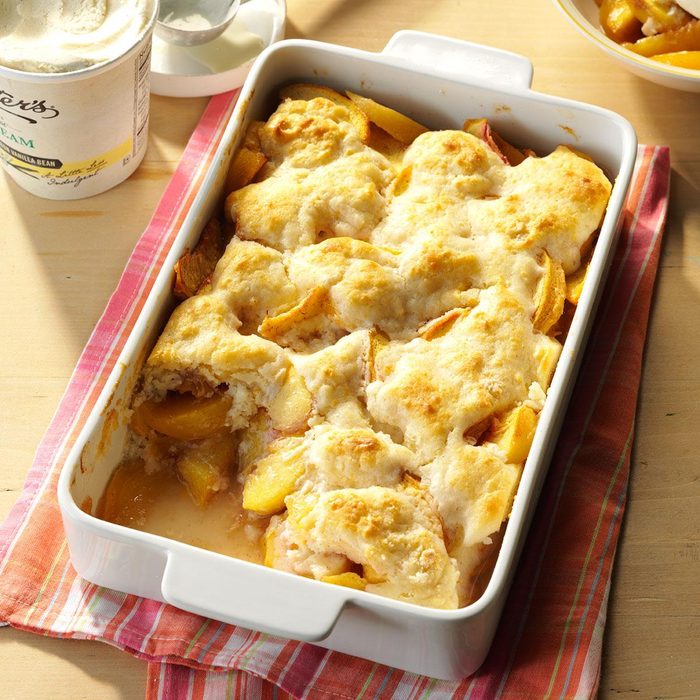 With peach orchards just a couple of miles from home, it's easy to treat my family to this traditional dessert. —Mattie Carter, Rock Hill, South Carolina