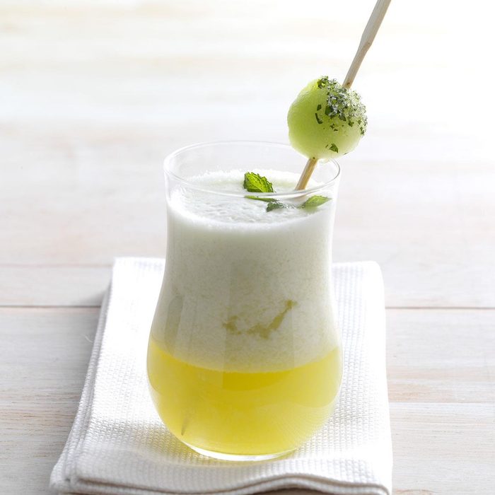I grow mint in the garden on my balcony. For this tea, I blend two of my favorite beverages—Moroccan mint tea and honeydew agua fresca. —Sarah Batt Throne, El Cerrito, California