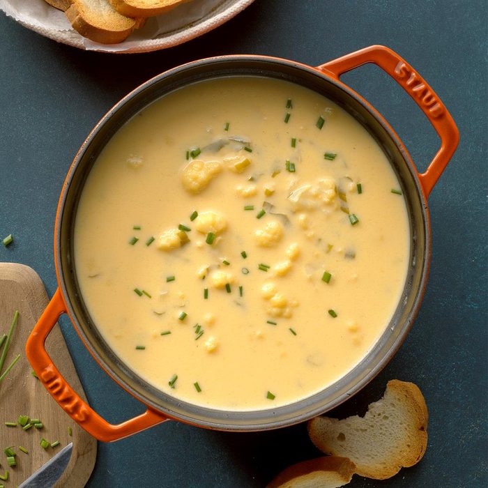 This mildly cheesy cauliflower soup is a favorite of mine. I make it often in summer, although it’s good anytime. —Karen Brown, West Lafayette, Ohio. If you want to make a dairy-free soup, then you must try this vegan cauliflower soup.