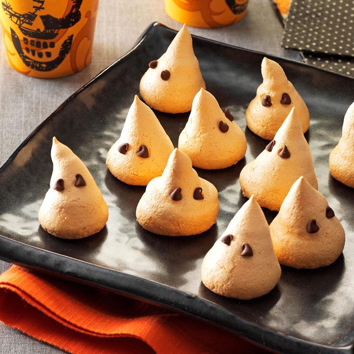 The Taste of Home Test Kitchen turned cute meringue cookies into these whimsical kisses, perfect for Halloween. With just 15 calories, each little treat can be enjoyed guilt-free! —Phyllis Schmalz, Kansas City, Kansas