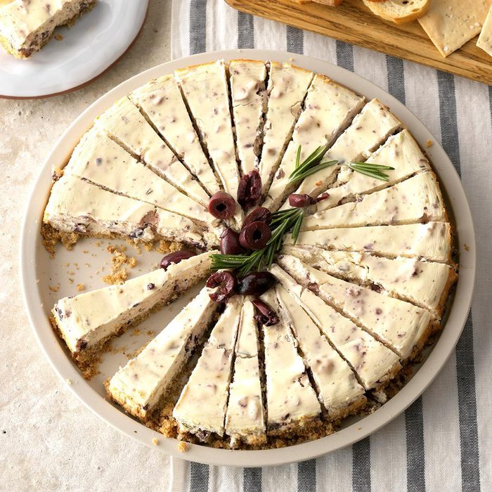 It's believed the Greeks served cheesecake at the first Olympics, so why not rewrite history with a Greek cheesecake appetizer? Ingredients in this version "tame" the kalamata olives, so even if you shy away from kalamatas, you'll be glad you tried this one. For a milder flavor, use the more common black or green olives. —Theresa Kreyche, Tustin, California