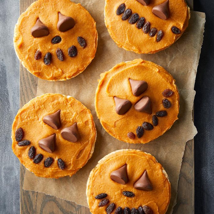 Caramel rice cakes are dressed up for Halloween in this easy, sweet treat. With pumpkin, apple and raisins, it's a healthy snack that doesn't skimp on taste. —Grace Monahan, Middletown, New York