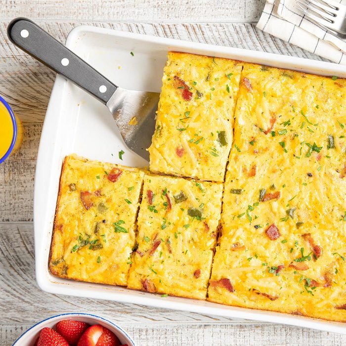 Easy and cheesy, my go-to casserole for action-packed mornings has made many appearances at holiday breakfasts, potlucks and even my daughter’s college apartment to feed her hungry roommates. —Patty Bernhard, Greenville, Ohio