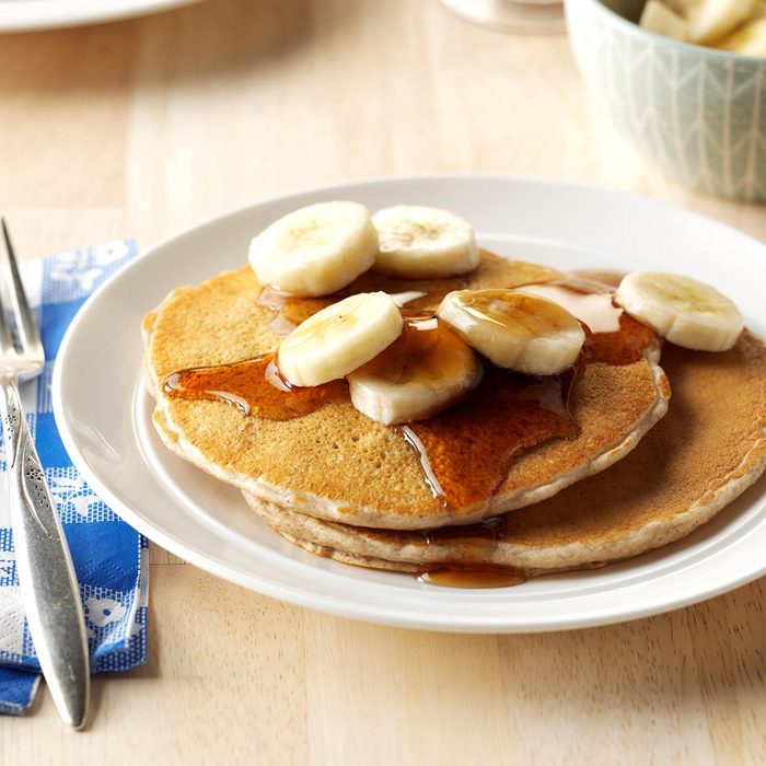 My kids love homemade banana bread, so why not make it in pancake form? These freeze well for a special breakfast any day. —Ally Billhorn, Wilton, Iowa