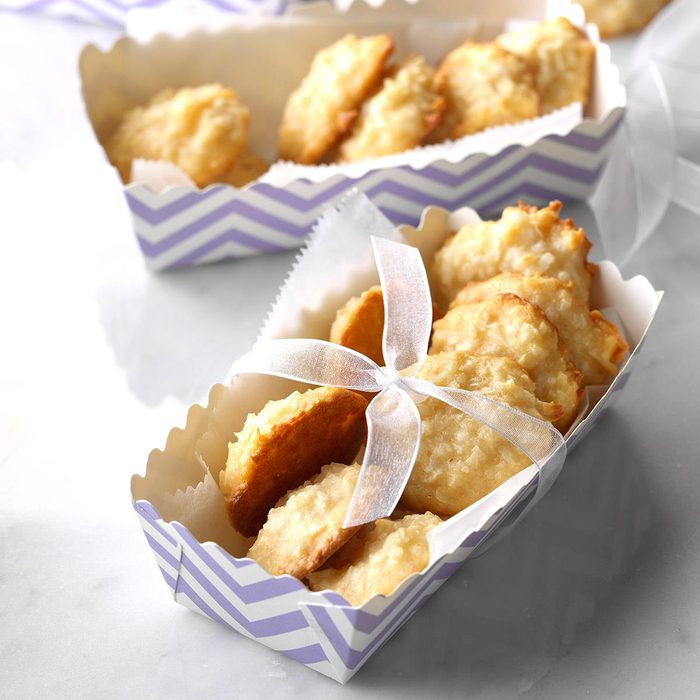 These chewy cookies are my husband’s favorite, so he requests them often. I like to make the macaroons on cold winter days and keep them in an airtight bowl on the kitchen counter. They never last long! —Peggy Key, Grant, Alabama