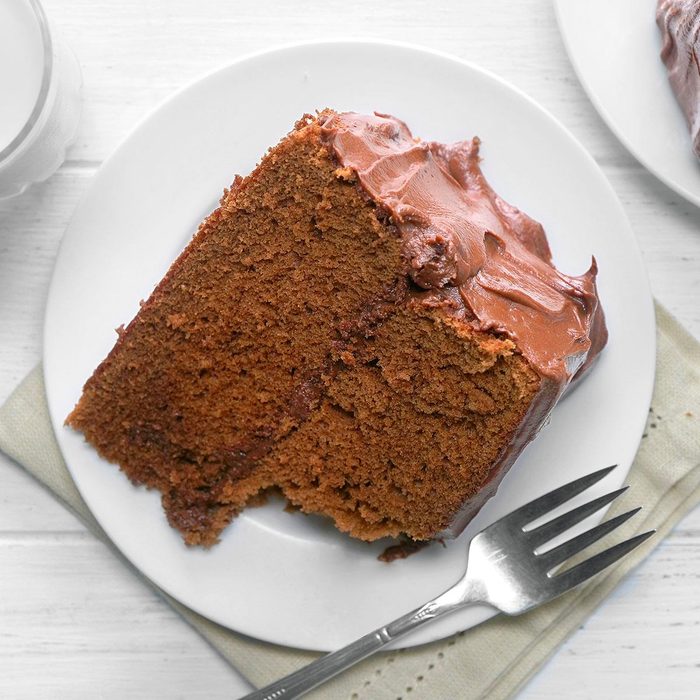 This recipe won several blue ribbons at our state fair. The made-from-scratch chocolate layer cake topped with a fudgy homemade frosting is truly a can't-miss dessert. —Donna Carman, Tulsa, Oklahoma