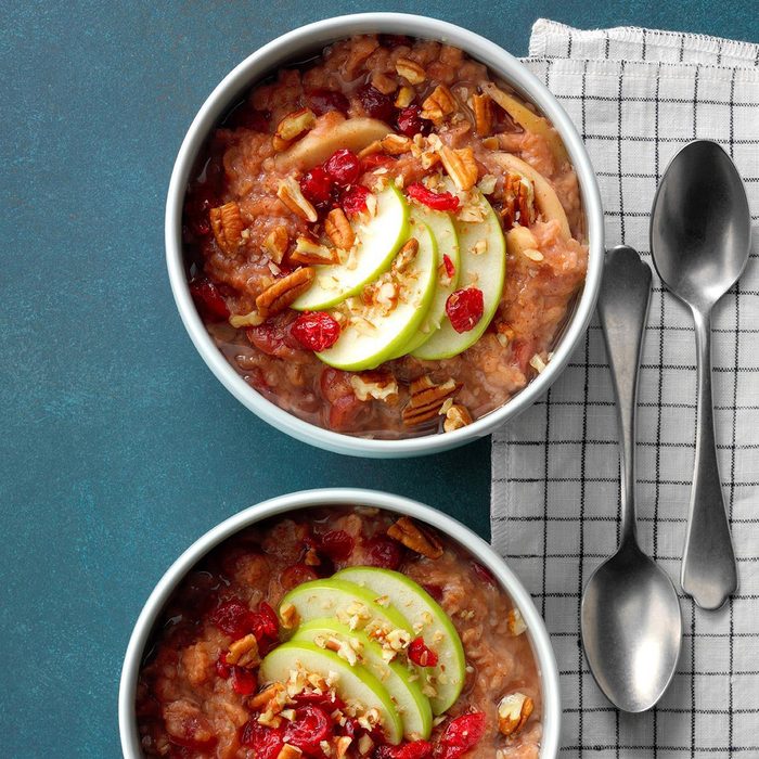 When I first tried this dish, I was convinced I was eating yummy apple crisp for breakfast. I even cut down on the butter, but this hearty oatmeal remained moist and scrumptious, and so convenient when cooked overnight. —Monica Lord, Collegeville, Pennsylvania