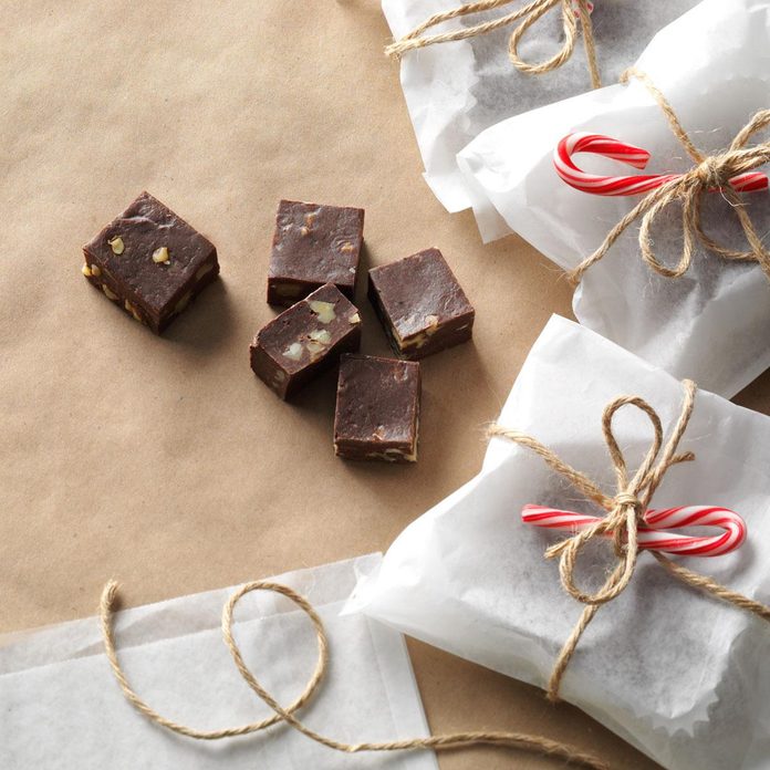 Put parchment paper to good use with this idea for packaging edible gifts: Carefully wrap your favorite Christmas fudge inside a DIY parchment paper wrapping paper. Complete the rustic look by tying a twine ribbon adorned with a cheery candy cane.