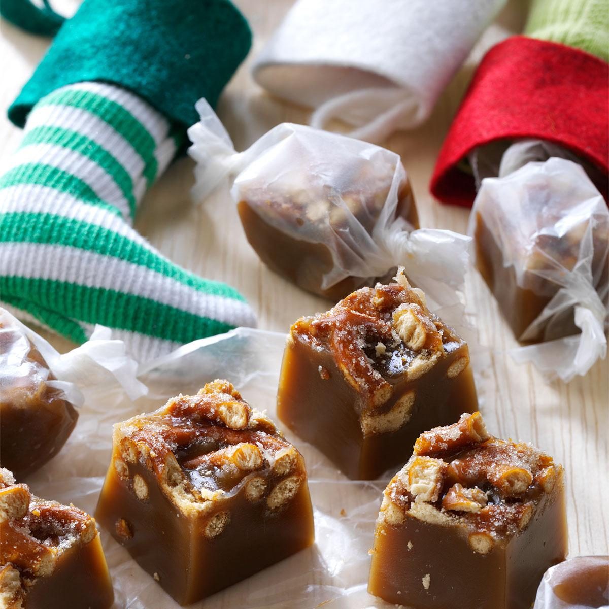 Stuff mini stockings with our bite-sized beer and pretzel caramels. These buffalo plaid mini stockings from Amazon are super festive and fun. For variety, toss a few other homemade Christmas candies in there, too. (This easy truffles recipe would pair nicely!)