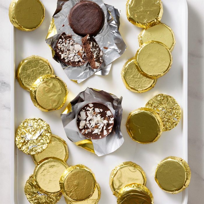What’s a game of dreidel without gelt? These waxy chocolate coins wrapped in shiny gold foil have a rich history and are a staple during Hanukkah, especially for kids. You can make homemade gelt when you prepare other recipes for Hanukkah.