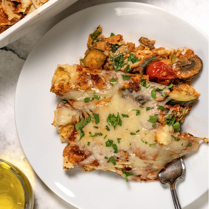 You won’t want to waste a single ounce of this cheesy vegetarian baked pasta, so make sure you know how to freeze lasagna the right way. This recipe calls for no-cook lasagna noodles, which makes layering it even easier.