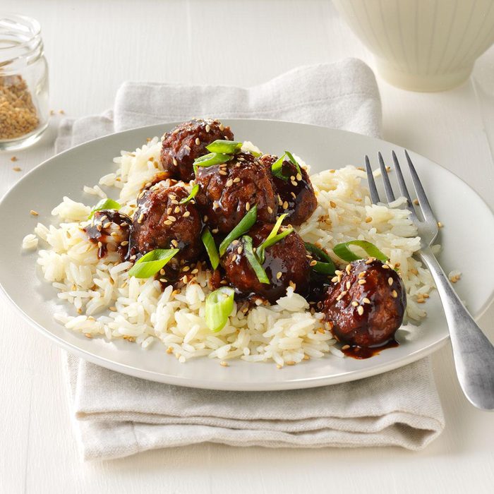 As a writer and busy mom of three boys, I need tasty meals on the quick. We serve these glazed meatballs over a steaming bed of rice. —Amy Dong, Woodbury, Minnesota