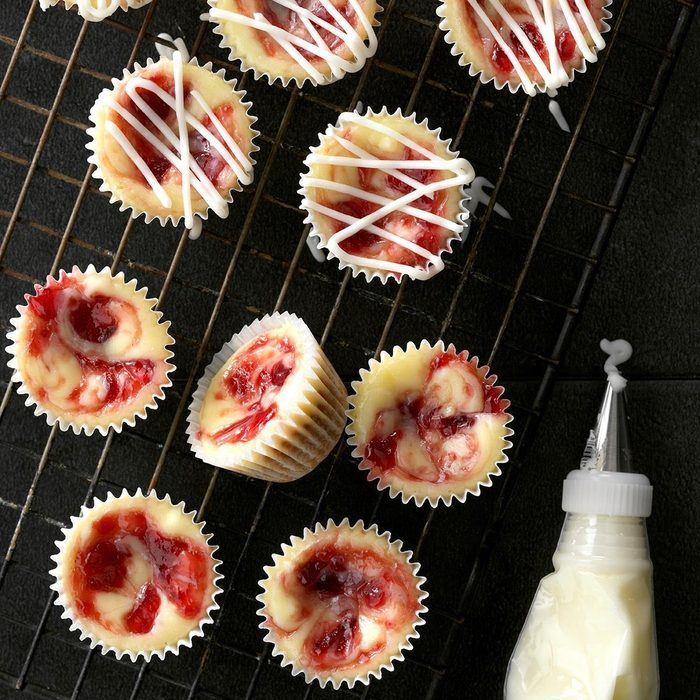 These little cheesecakes make a fun dessert that's just right for cooks who don't have a lot of time for fussy recipes. Plus, you get to eat a whole mini cheesecake yourself! —Kay Keller, Morenci, Michigan