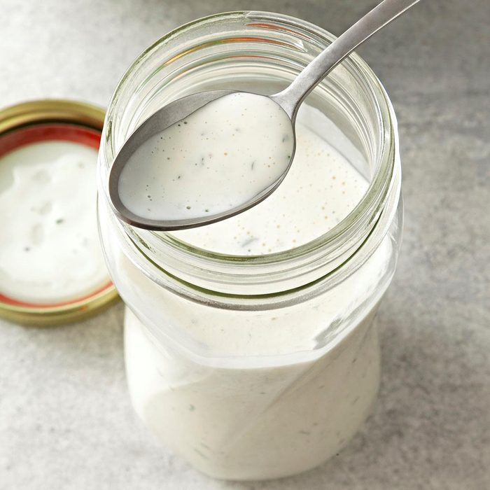 When serving salad to a crowd, this easy buttermilk ranch dressing comes in handy. It make a full quart of creamy, delicious dressing to toss with your favorite greens and veggies. —Patricia Mele, Lower Burrell, Pennsylvania