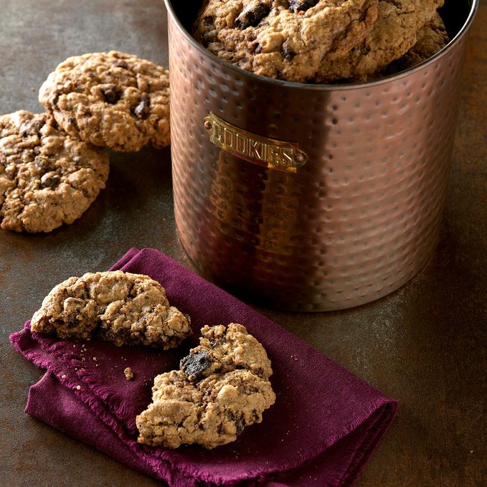 I packed chocolate chips, raisins, nuts and cinnamon into my oatmeal cookie recipe. These soft cookies are easy to make. Best of all, our kids love them! —Janis Plageman, Lynden, Washington