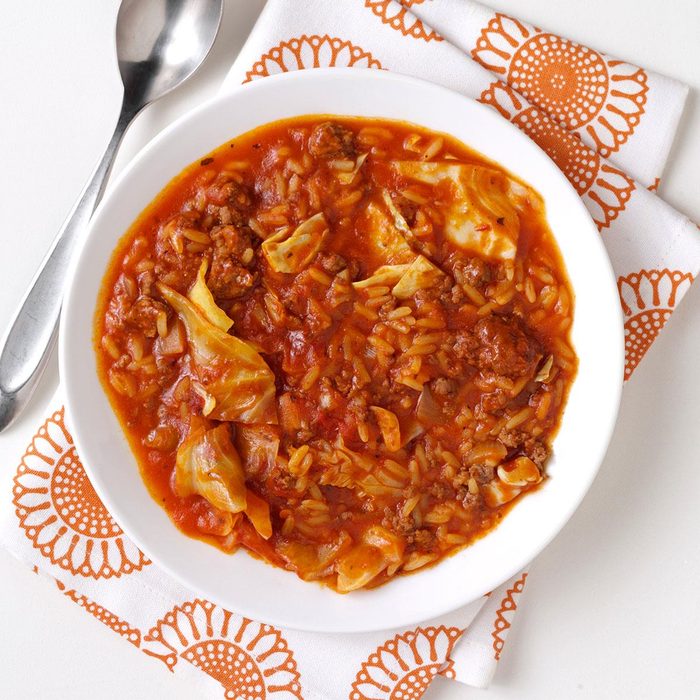 I modified my mom's classic Polish dish to fit my hectic life. Instead of boiling the cabbage and then filling it with beef, I just toss the ingredients in the slow cooker. It's much easier and tastes just as delicious. —Mary Walker, Clermont, Florida