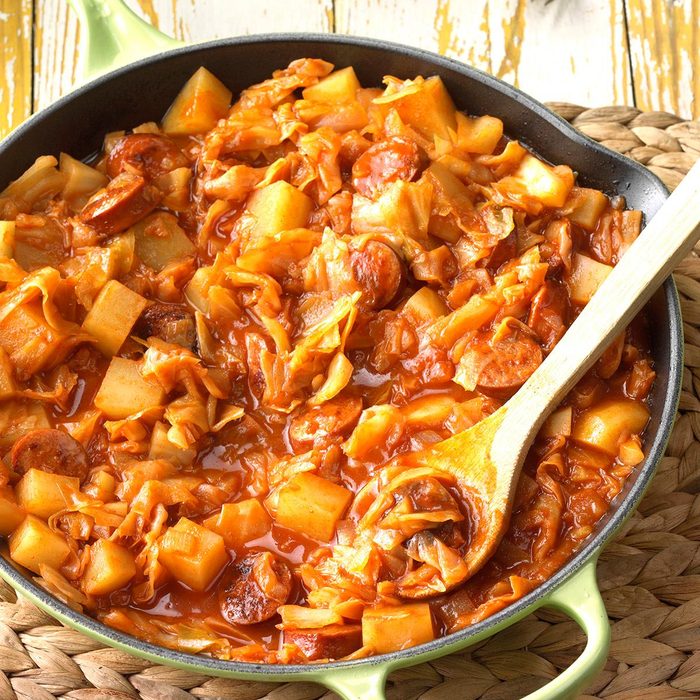 Spicy kielbasa sausage and plentiful cabbage and potatoes give this dish a pleasing Old World flair. My husband never liked cabbage before I made this, but now he does! —Romaine Wetzel, Ronks, Pennsylvania