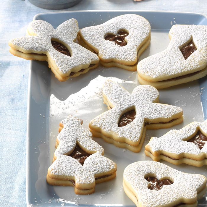 From the Recipe Creator: With a creamy chocolate and hazelnut filling, these decadent Christmas cookies look and taste amazing. Guests will never guess how relatively easy they are to make. —Mary Maddox, Bellmore, New York