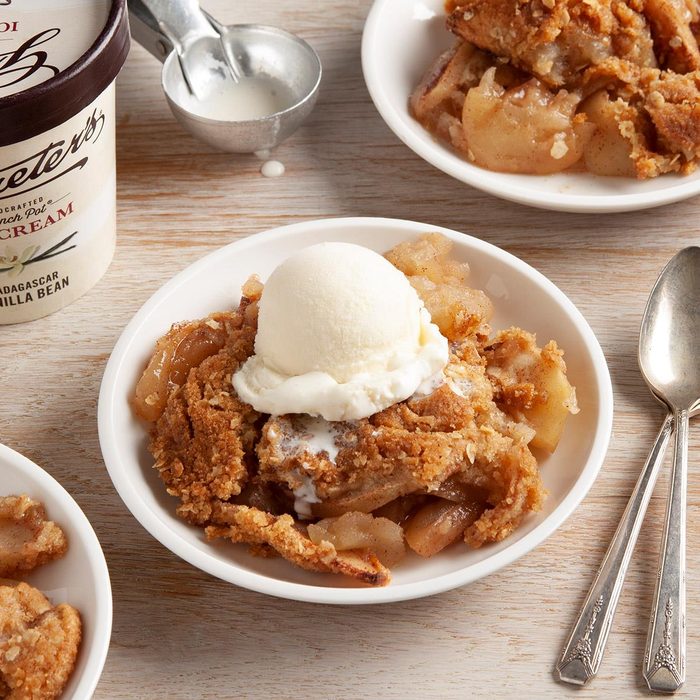 Here’s an easy apple crisp! This is a delicious dessert perfect for young cooks to prepare. It’s super simple to make since there’s no crust—just a crumbly topping. Plus, with apples and oats, it’s a wholesome treat. —Sheri Hatten, Devil’s Lake, North Dakota